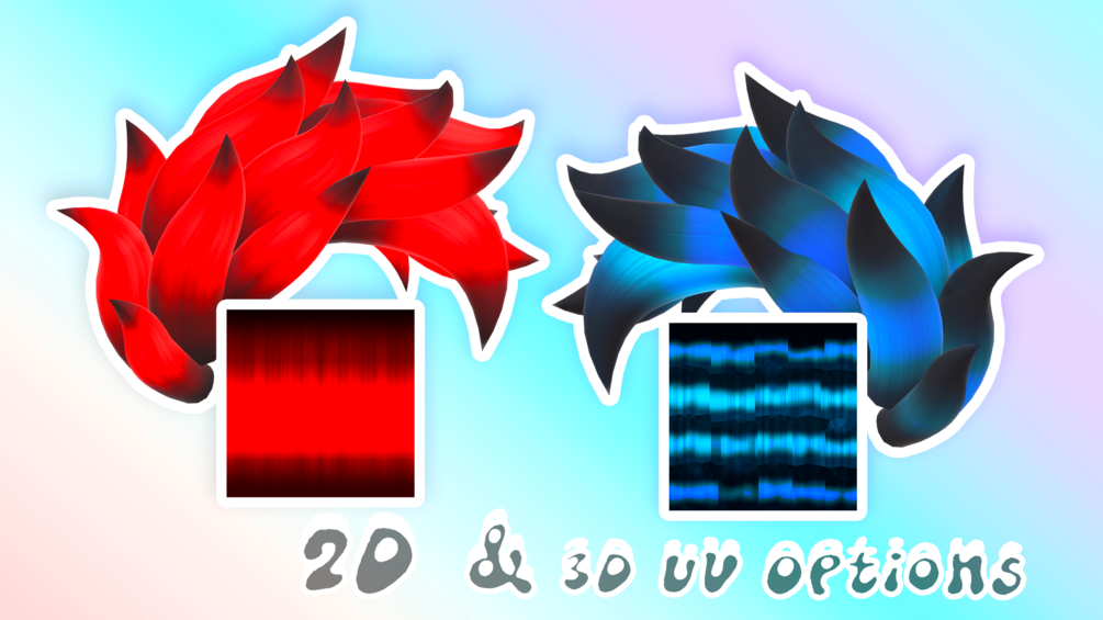 - Two variants included, one for 3D Texture UVs (individually paintable hair pieces) and one for 2D Texture UVs (Generally uses a flat pre-made texture)